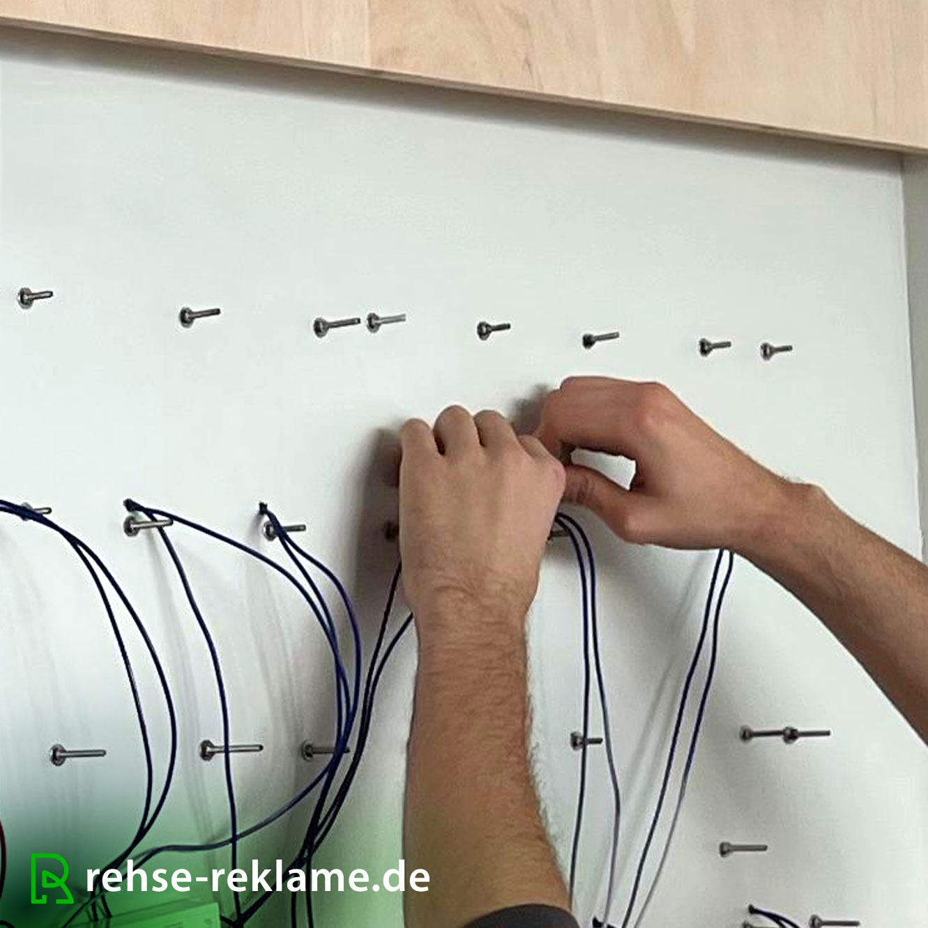 Bei Neubauten im Außen- oder Innenbereich haben wir immer die Chance die Leuchtbuchstaben, ohne eine sichtbare Unterkonstruktion, direkt auf die Wand zu montieren. Das sieht, wie in diesem Beispiel, immer schön sauber aus.