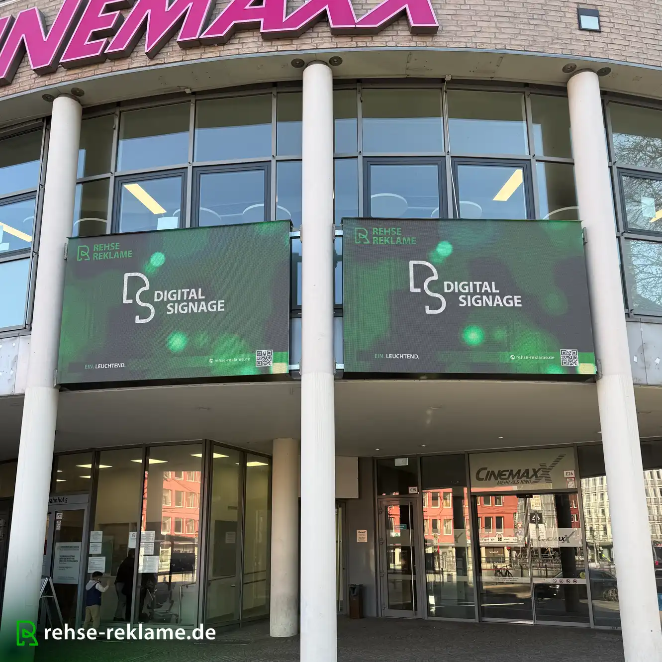 Am Kino Cinemaxx in Krefeld haben wir zwei große Digital Signage Flächen installiert.