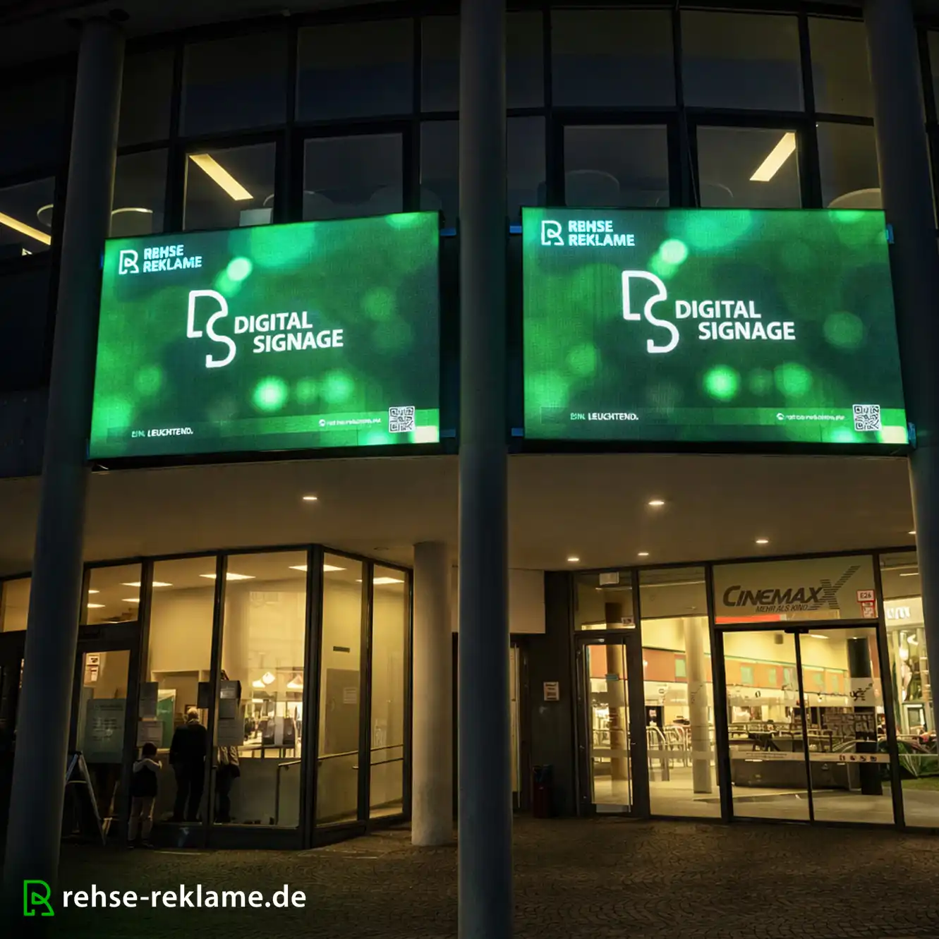 Für moderne Kinostandorte wird digitale Außenwerbung immer wichtiger. Im Rahmen eines Projekts wurden zwei Digital Signage Screens mit einer Größe von jeweils 3 × 2 Metern installiert, um Kinoprogramm, aktuelle Angebote und Werbeinhalte dynamisch präsentieren zu können. Die LED-Screens sind speziell für den dauerhaften Outdoor-Einsatz konzipiert und bieten durch leistungsstarke Technik eine hervorragende Sichtbarkeit – auch bei direkter Sonneneinstrahlung.