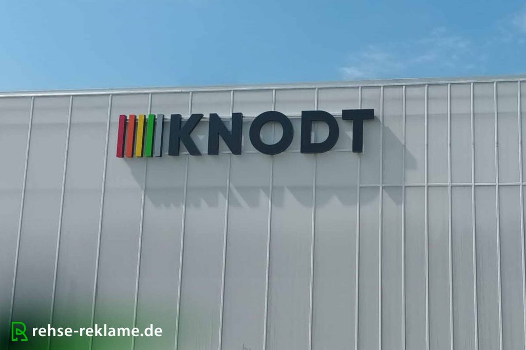 Folierung und Vollacrylbuchstaben als Seitenleuchter für Berufsschule